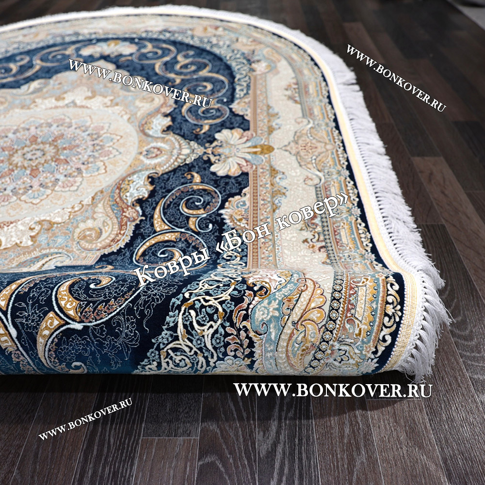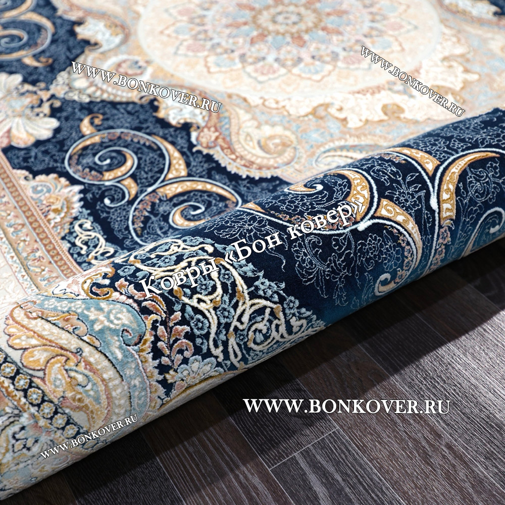 Отличный ковер , правда на размере 160х400 см разместилось две серединки - так даже гармоничнее ! Цвет темно-синий - камера плохо передает