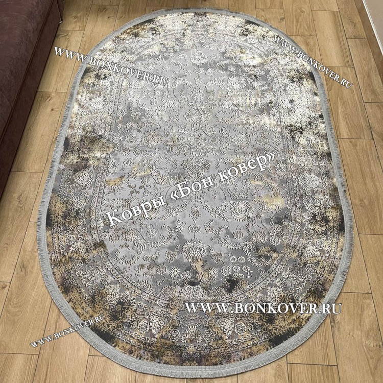 Турецкий ковер для гостиной Дизайн 01 Серый Овал станет внезапным преображением вашей комнаты, подчеркивая высокий статус владельца.